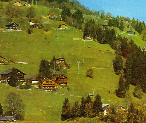 Galerie > Fotos von Seilbahnen aus vergangenen zeiten in Braunwald / Photos de remontées mécaniques de temps passé à Braunwald > Gondelbahn " télécabine" Hüttenberg - Grotzenbüel 1974 - 1989/90